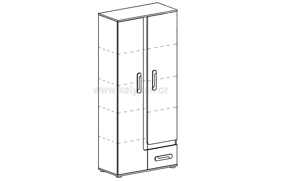 Šatní skříň Apettita 03 je moderní a prostorná skříň vybavená čtyřmi prostornými policemi. Ve spodní části se nachází designový a praktický šuplík.