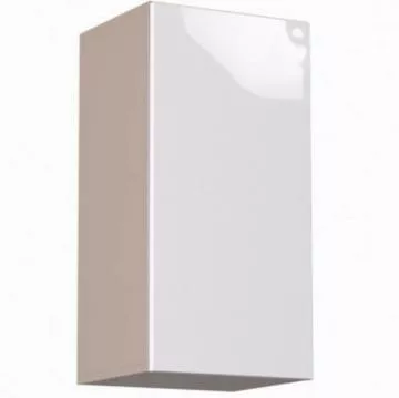 Otevřená skříňka Rea rebecca 9 s policí ze sektorového systému Rea rebecca. Na otevírání skříňky byl použit dotykový systém Push up. Jde o ...