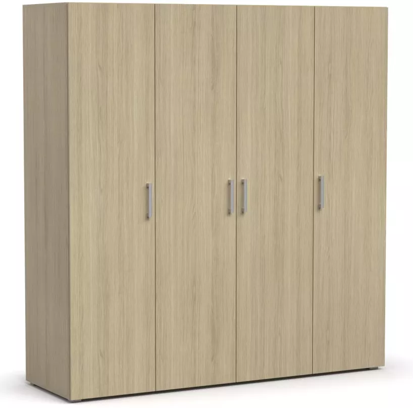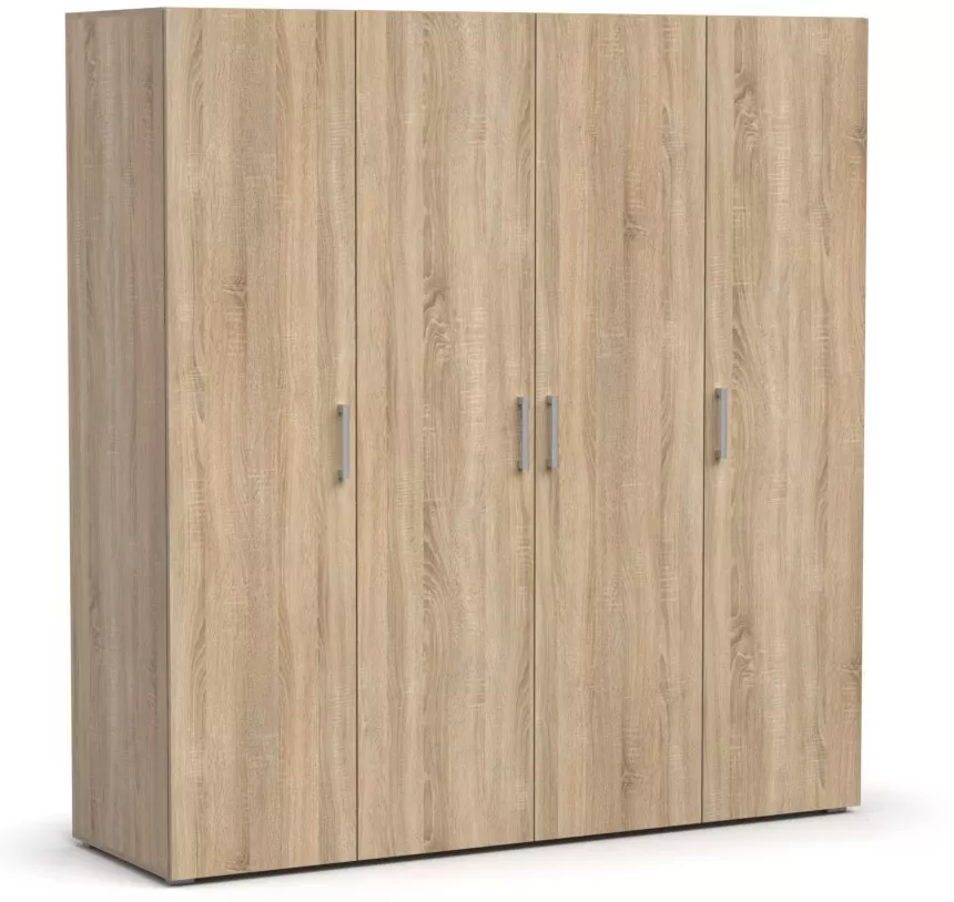 Skříň má čtvery dveře, věšákovou část, nad níž se nachází police s dostatkem místa na oblečení.
