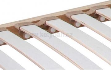 28 lamel s bílou fólií uložených ve výkyvných sučukových duokapsách na kolíku. Změkčení vrtáním lamel v ramenní oblasti zajišťuje správnou oporu páteři při poloze na boku. Bočnice jsou z části potažené fólií.