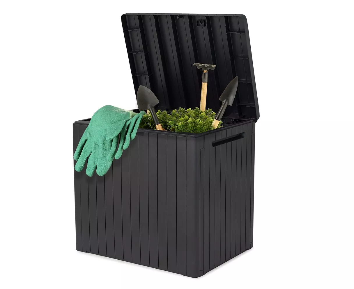 113 litrový plastový box City box pro uložení nejrůznějších předmětů, jako jsou podušky, zahradní náčinní atd.