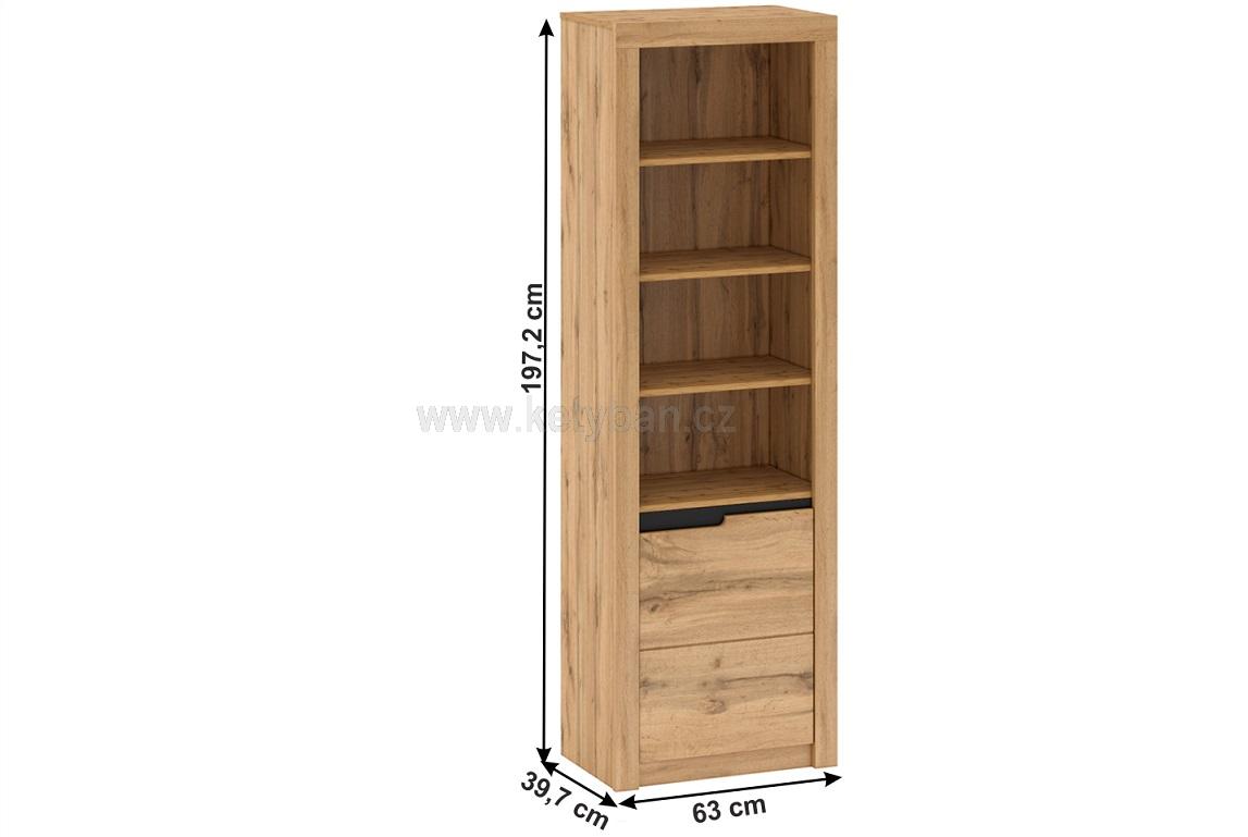 Moderní provedení otevřeného regálu Toronto R2 v klidných barvách dub wotan.