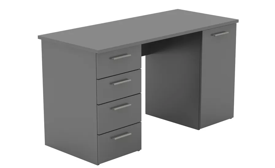 Vrchní plát stolu je silný až 22 mm. Stůl disponuje čtyřmi šuplíky, z nichž jsou dva mělčí a spodní dva hlubší. Má také skříňku, jejíž obsah tvoří dvě police.