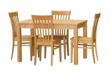 Deska stolu je vyrobena z lamina o síle 25 mm. Masivní nohy jsou o rozměru 6,5 x 6,5 cm. Stůl je opatřen ABS hranami.