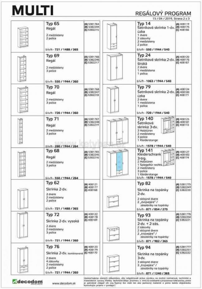 Šatník Multi plus typ 79 je dvoudveřovou a úzkou skříní. Součástí jsou ...