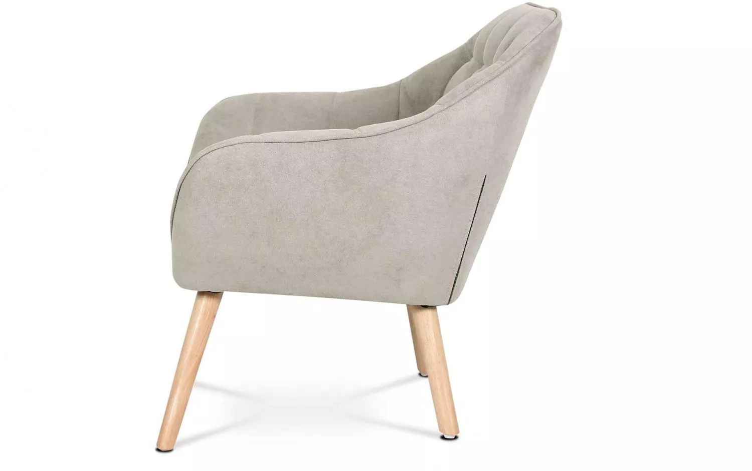 Potah je z látky v trendy odstínech, kostra z masivního dřeva, vyplněné je kvalitní PU pěnou. Sedák je uvnitř zpevněn elastickými popruhy pro zvýšení komfortu sezení. Pohodlí a vnitřní prostornost tohoto křesla ocení jistě každý. A pokud si ještě opřete ruce o zvýšené područky, budete dlouho otálet, než křeslo opustíte.