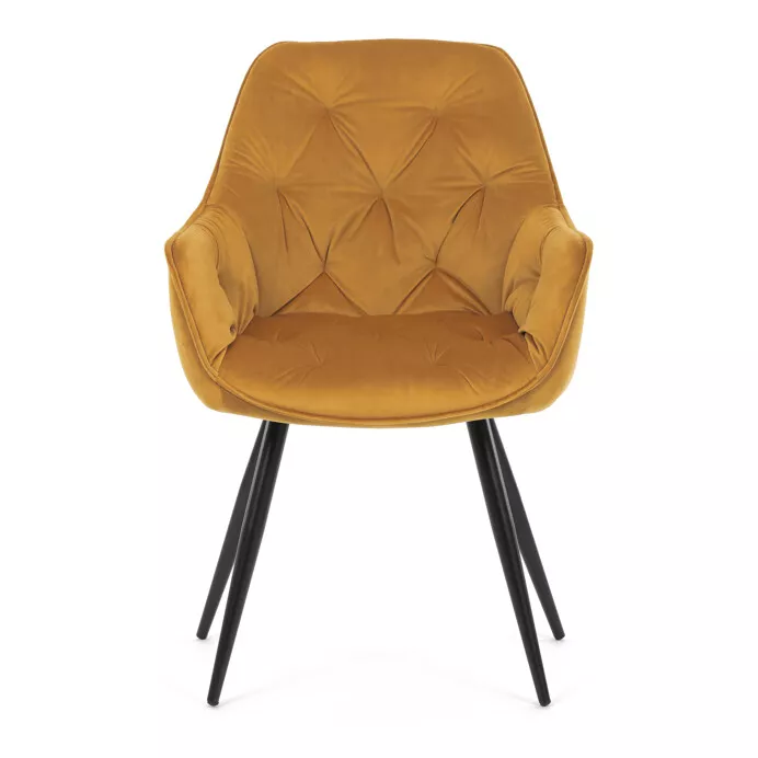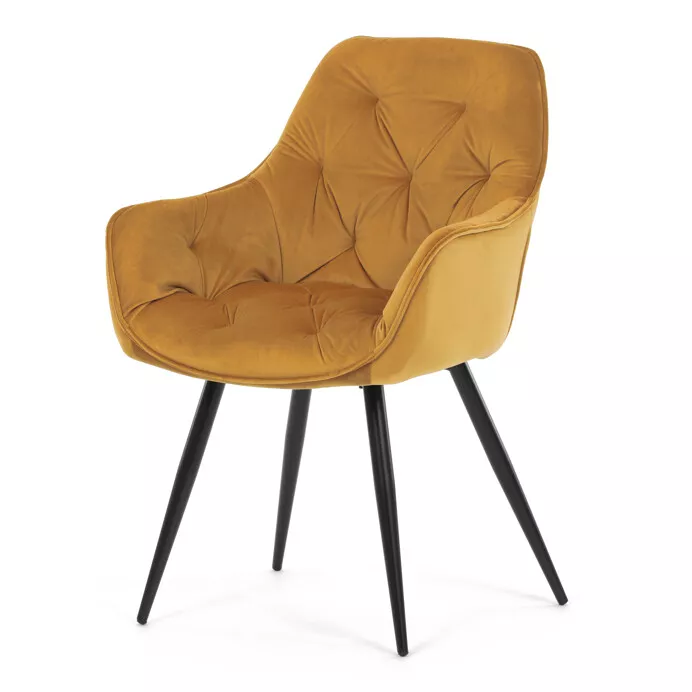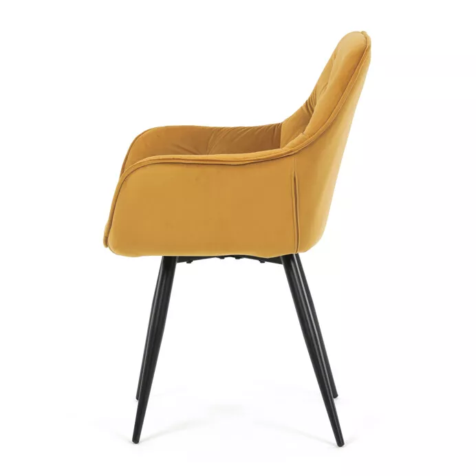Čalounění jídelního křesla je v provedení velmi příjemného sametu, který se vyznačuje snadnou údržbou. Výrazné a bohaté prošití opěry zaujme na první pohled. Sedák je již bez prošívání s hladkým povrchem.