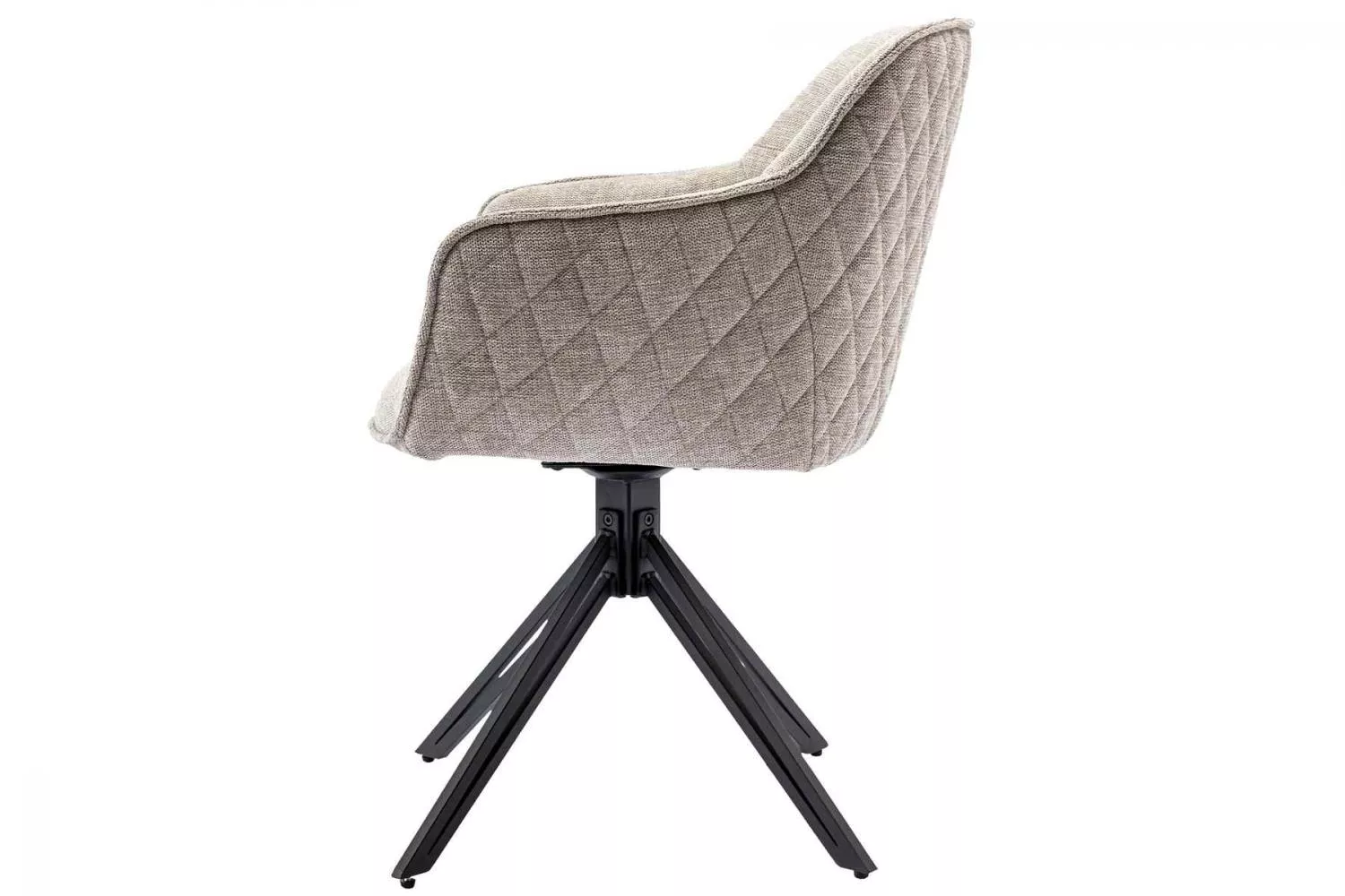 Příjemný dekorativní prvky tvoří centrální čalounický vtah na opěradle a z vnější strany kosočtvercové prošívání. Nedílnou součástí je široká látková paspule v barvě židle, lemující celý obvod.