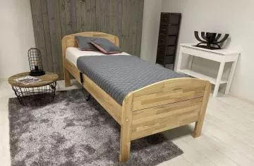 Kvalita a design: Postel je vyrobena z prvotřídního bukového masivního dřeva, což zaručuje její dlouhou životnost. Přírodní design postele vyniká díky jedinečné kráse dřeva a masivním profilům, které dodávají posteli pevnost a stabilitu. Ekologický lak, kterým je postel lakována, podtrhuje a zachovává přírodní kouzlo masivního dřeva.