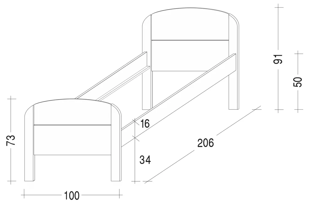 Je důležité poznamenat, že postel je dodávána bez roštu. Pro uložení roštu a matrace je v bočnici postele zapuštění nosného hranolu o hloubce 12,5 cm.
