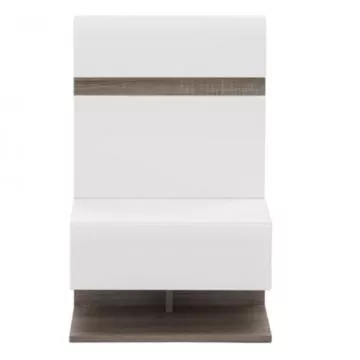 Noční stolek LYNATET 95: Provedení: bílá extra vysoký lesk HG / dub sonoma truflový Materiál: DTD laminovaná, dvířka MDF ...