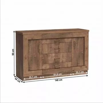 Komoda TEDY TYP T6: Materiál: DTD laminovaná / ABS hrany / MDF Barva: dub lefkas Rozměry (ŠxHxV): 140x44x90 cm Tloušťka materiálu: 32 ...
