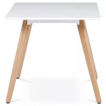 Jídelní stůl DT-313 WT je mistrovským kouskem, který elegantně spojuje funkčnost s estetickou přitažlivostí. Deska stolu je vyrobena z kvalitní MDF s bílým matným povrchem, což dodává interiéru čistý a sofistikovaný vzhled. Masivní bukové nohy v přírodním hnědém odstínu nejen zajišťují stabilitu, ale také dodávají stolu přírodní eleganci.