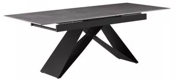 Křížové nohy stolu jsou vyrobené z kovu v černé barvě. Velká stolní deska je vyrobena z keramiky v odstínu betonu, což dává stolu moderní vzhled. Stůl je rozkládací a po rozložení je větší o 40 cm Designový jídelní stůl MAJED bude správnou volbou pro vaši jídelnu.