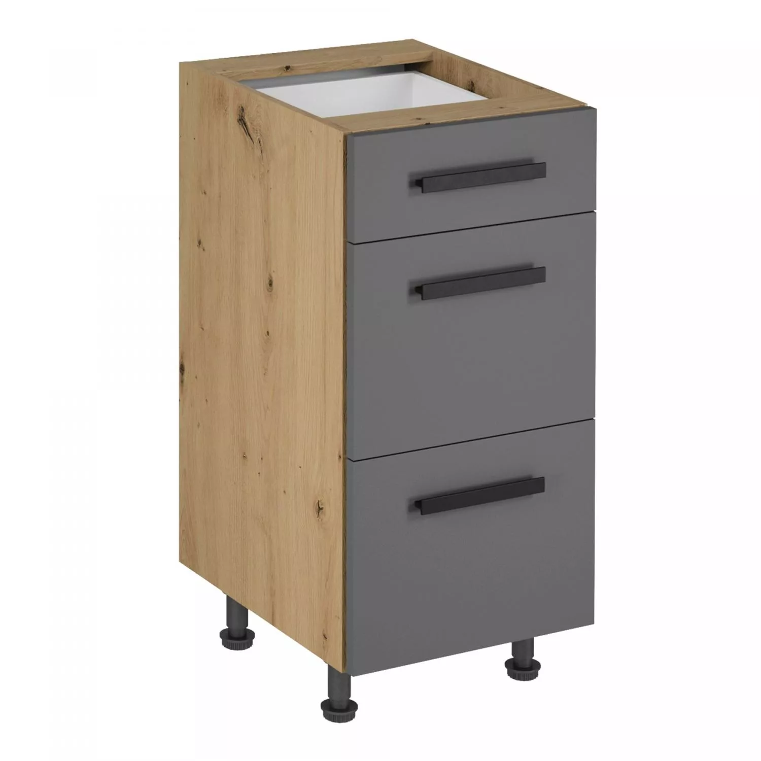 Spodní skříňka s úchytkami, LANGEN D40S3: Materiál: DTD laminovaná Barva: dub artisan / černý mat nebo dub artisan Rozměry (ŠxHxV): ...