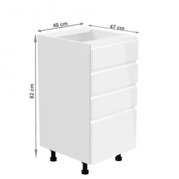 Spodní skříňka, Aurora D40S4: Provedení: DTD laminové / MDF Barva: bílá / šedá extra vysoký lesk nebo bílá / bílá extra vysoký ...