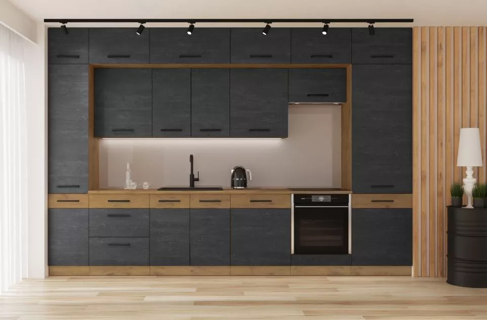 Spodní skříňky jsou dodávány včetně dolní lišty, bez pracovní desky. Možnost dokoupit pracovní desku dub lancelot v ceně: 1.450, - Kč / m. Možnost dokoupit univerzální L / P dřez LAY ON.