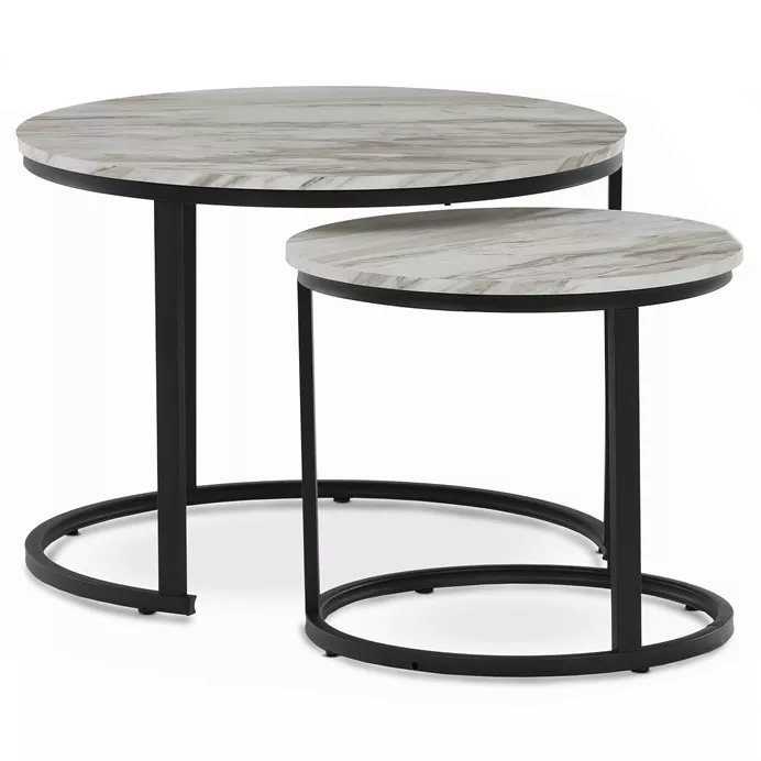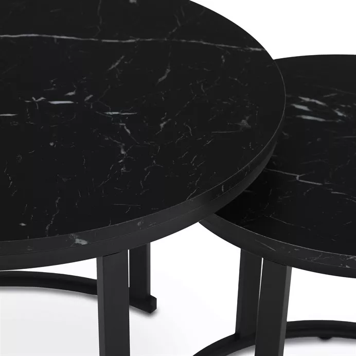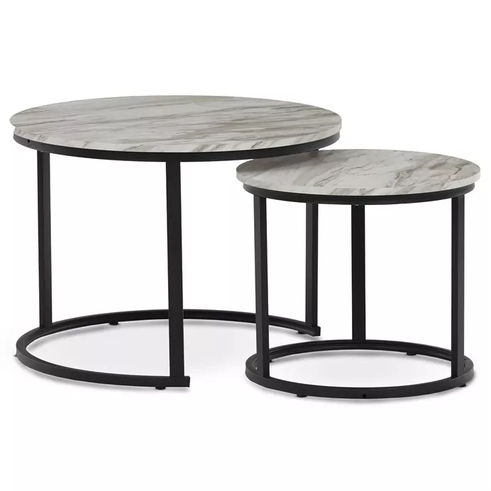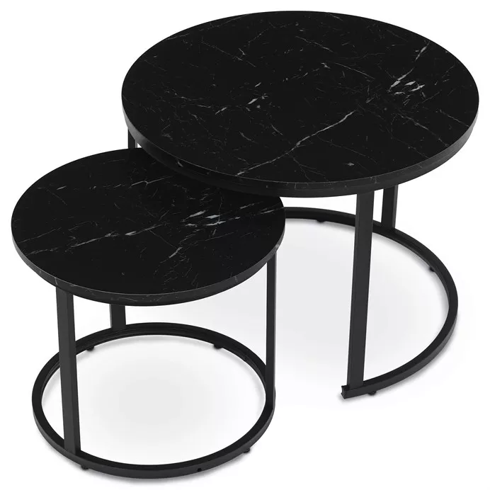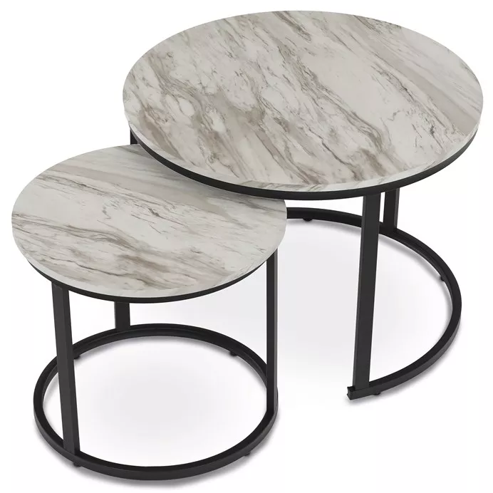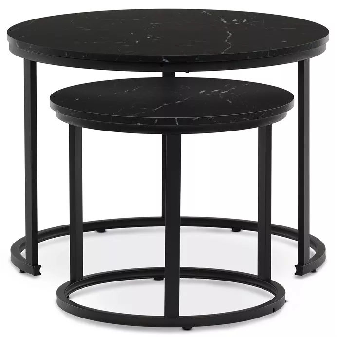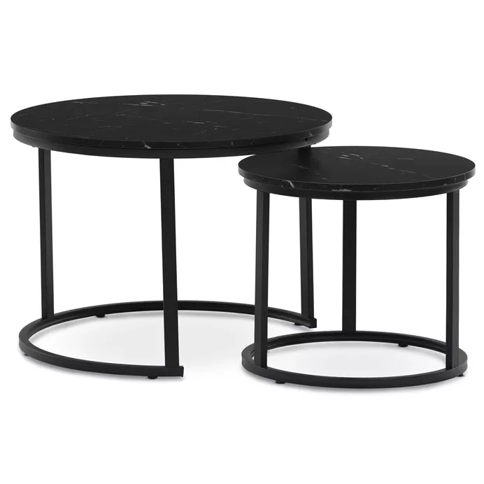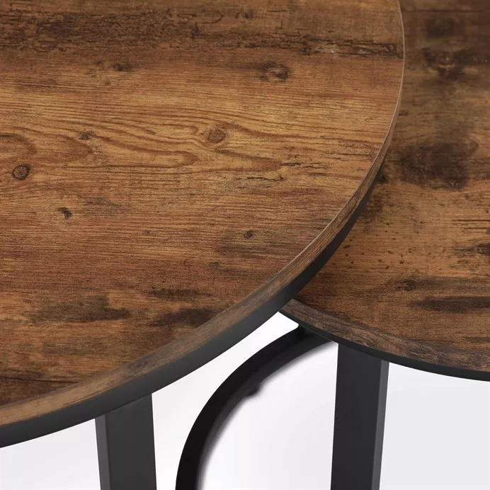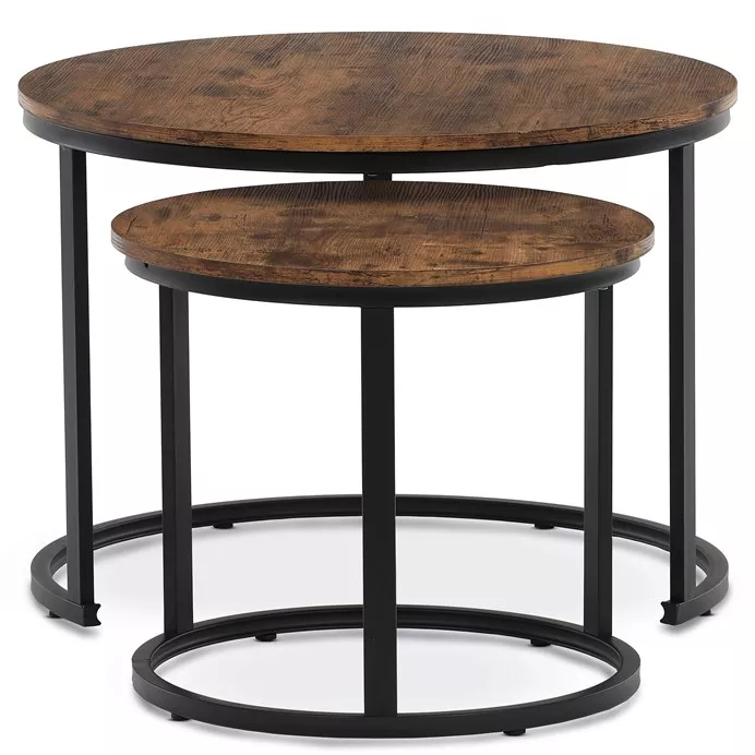 Sada dvou konferenčních stolků značky Autronic v industriálním stylu přinese do vašeho obývacího pokoje eleganci a praktičnost. Desky z MDF s dekorem divokého dubu v kombinaci s černými kovovými nohami vytvářejí stylový kontrast. Kruhový design a možnost menší stolek snadno umístit pod větší nabízí flexibilitu pro úsporu místa. Matný povrch desky je snadno udržovatelný a odolný vůči poškození. Tento set je ideální jak pro menší prostory, tak pro interiéry, kde vynikne svým moderním vzhledem a funkčním designem.