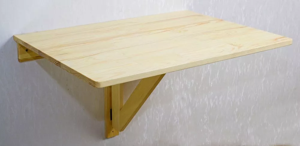 Skládací nástěnný stůl pro připevnění na stěnu. Skladný, praktický v přírodním provedení.