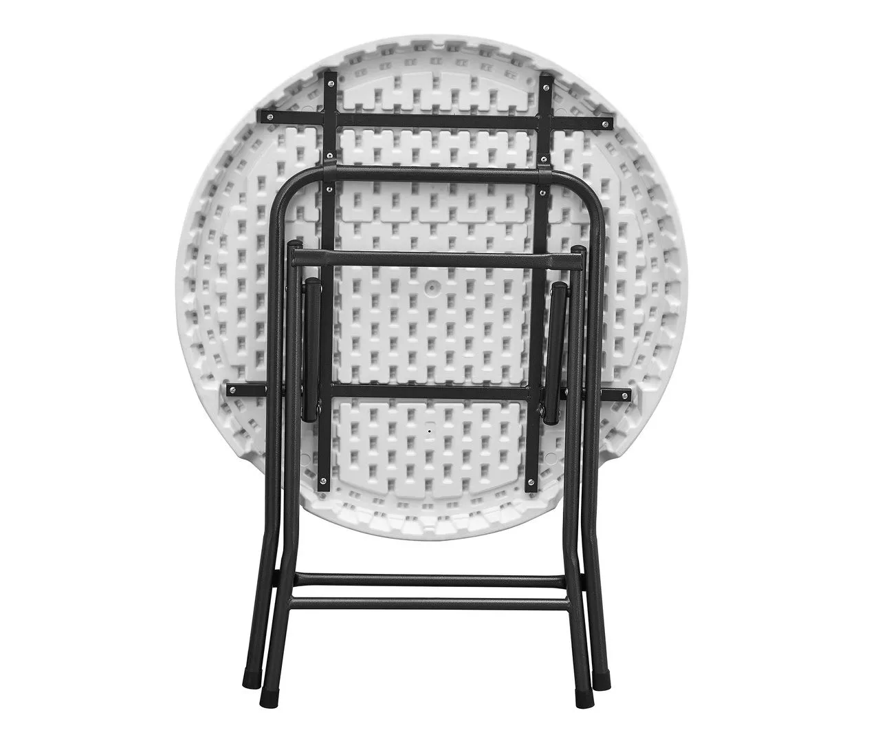 Skládací stůl Catering průměr 80 cm je vyroben z velice pevného materiálu HDPE s ocelovou konstrukcí. Konstrukce je ošetřena kladívkovou barvou. Stůl je vhodný do interiéru i exteriéru.