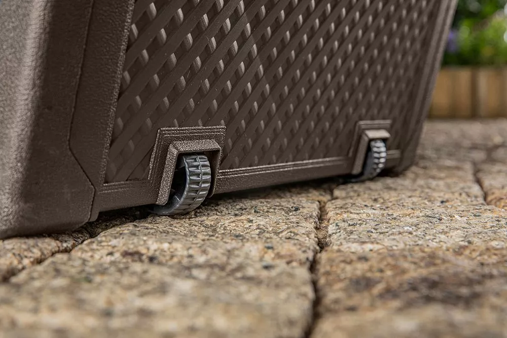Plastový box Emily pro uložení nejrůznějších předmětů (podušky, zahradní náčiní...) od firmy KETER. Výhodou tohoto boxu je jednoduchá montáž (bez využití nářadí - vše složíte jako stavebnici), vysoká kvalita boxu a moderní design. Materiál má UV ochranu a je odolný nepřízni počasí. Možnost sezení na boxu (max. zatížení 80 kg).