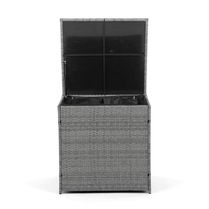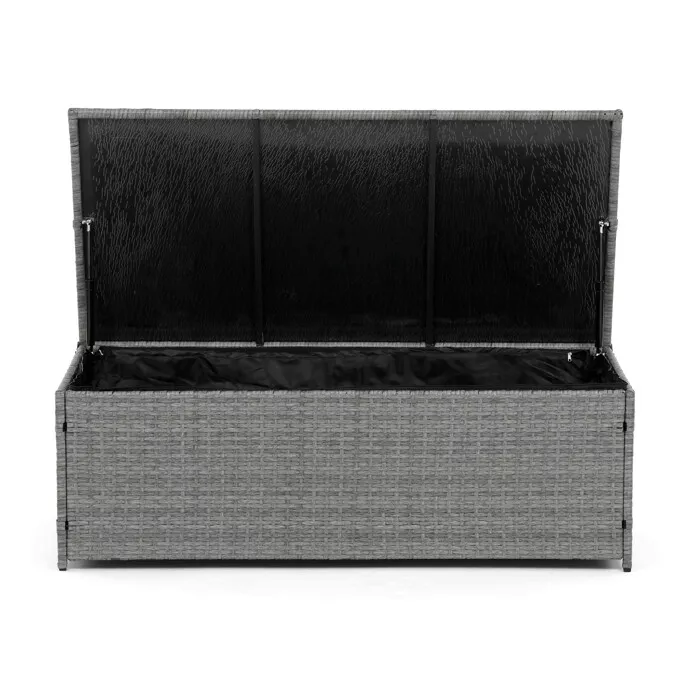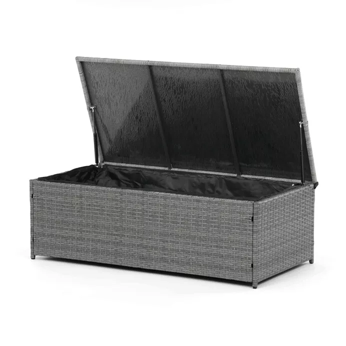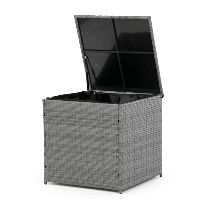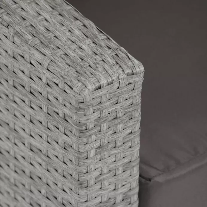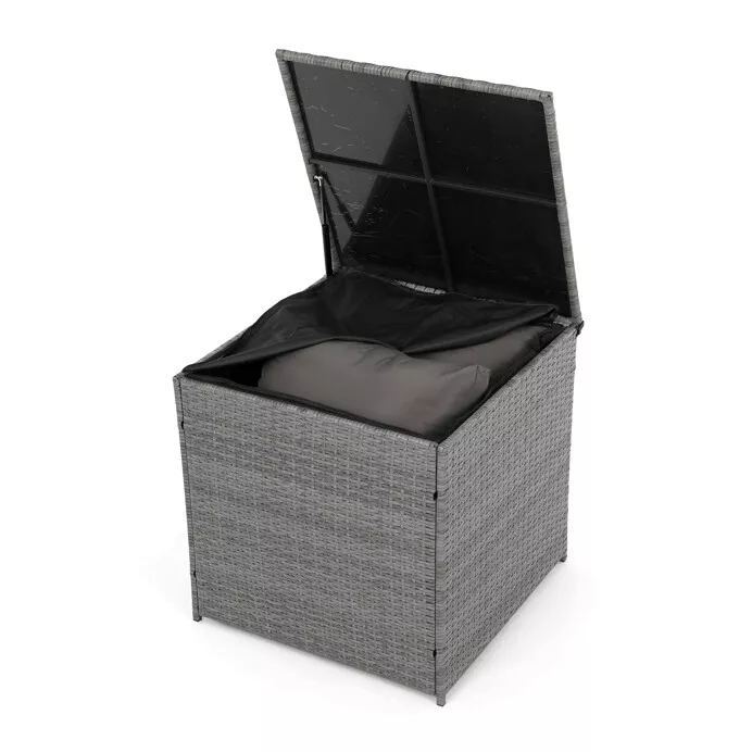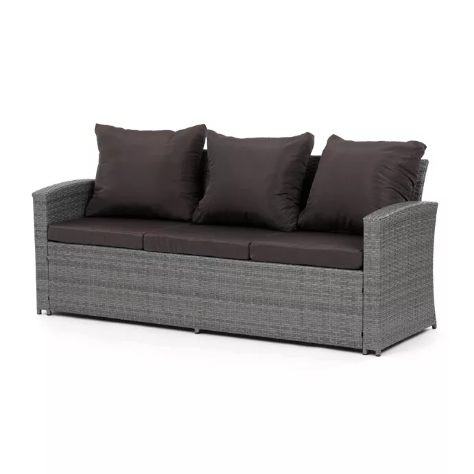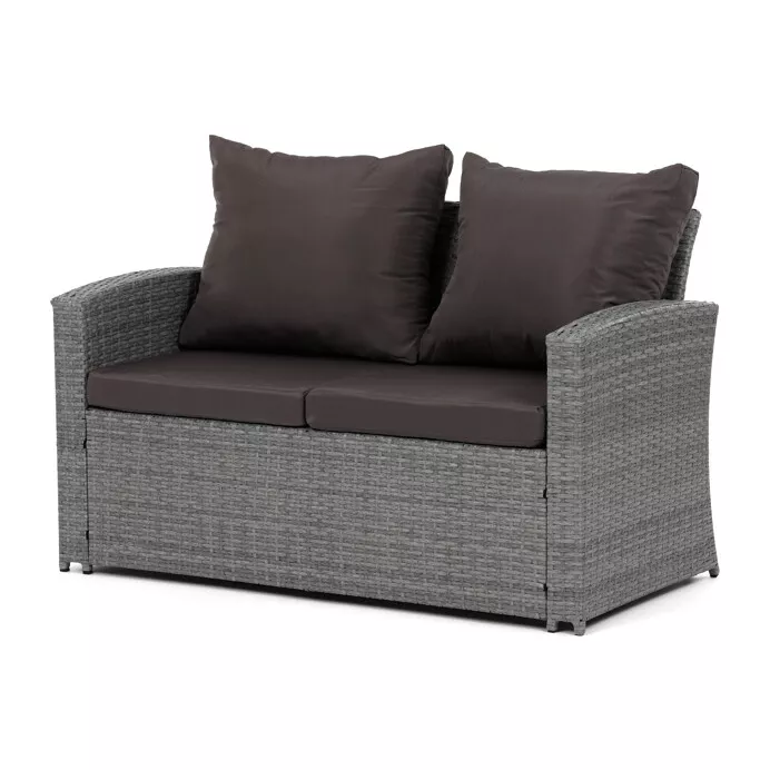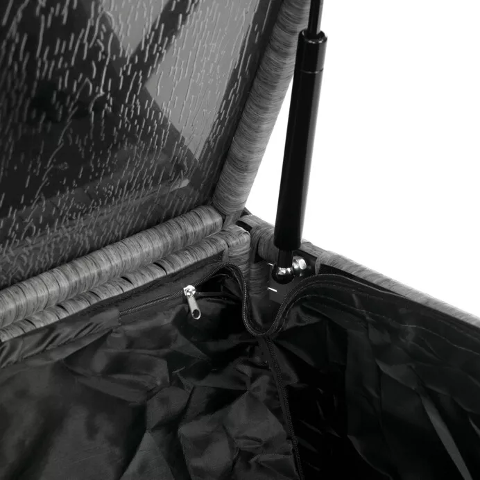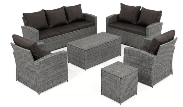- Velký stolek (119 × 60 × 40 cm) a boční stolek (70 × 70 × 64 cm) obsahují úložný prostor, kam lze uložit polštáře, deky nebo jiné doplňky.