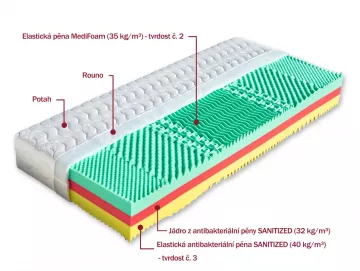 - Materiál jádra: MediFoam s úpravou Sanitized