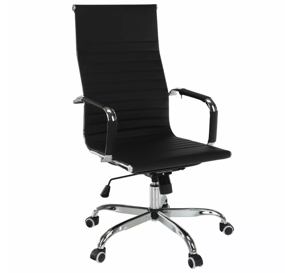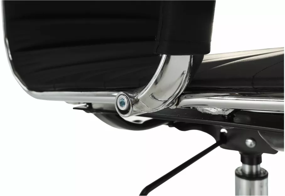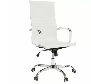 Ekokůže působí elegantně a svěže, zatímco pochromovaná základna dodává celkovému vzhledu punc luxusu. Nastavitelná výška sedu umožní přizpůsobit židli vašim potřebám, a pogumovaná kolečka zajišťují plynulý pohyb na všech typech podlah.