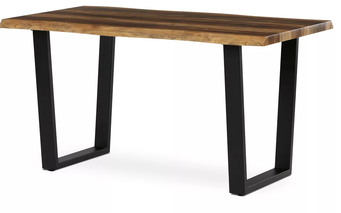 Deska z kvalitní MDF přináší do prostoru moderní atmosféru s nádechem přírodní elegance. Atypický tvar stolu dodává originalitu, zatímco černé kovové nohy poskytují stabilní základnu a vytvářejí stylový kontrast.