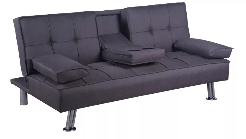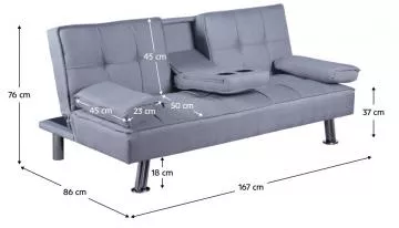 Pevné kovové nožky zajišťují stabilitu a dodávají pohovce lehkost a styl. Díky rozkládací funkci snadno vytvoříte pohodlné lůžko na příležitostné spaní o rozměru 167x100 cm. Zvláštností této pohovky je sklopná středová opěrka, která po sklopení poslouží jako praktický stolek - ideální pro šálek čaje nebo drobné občerstvení.