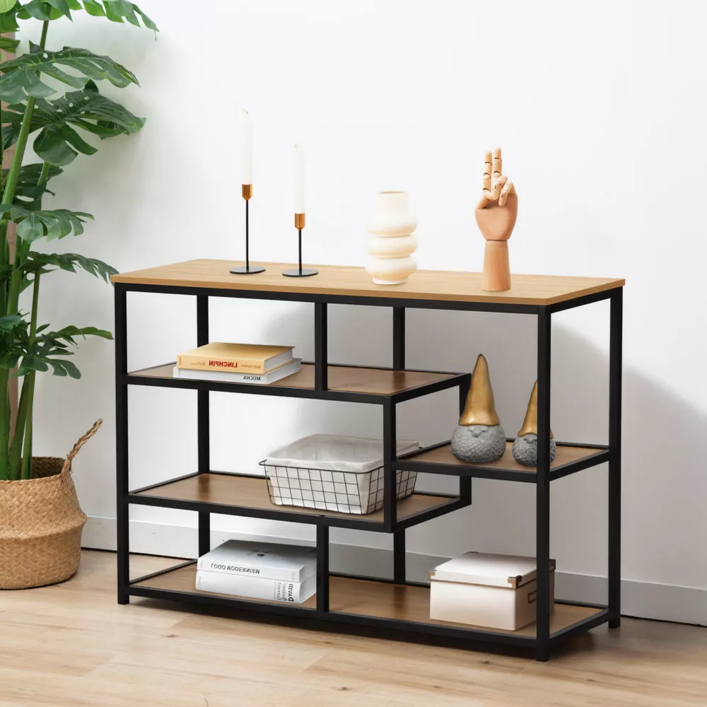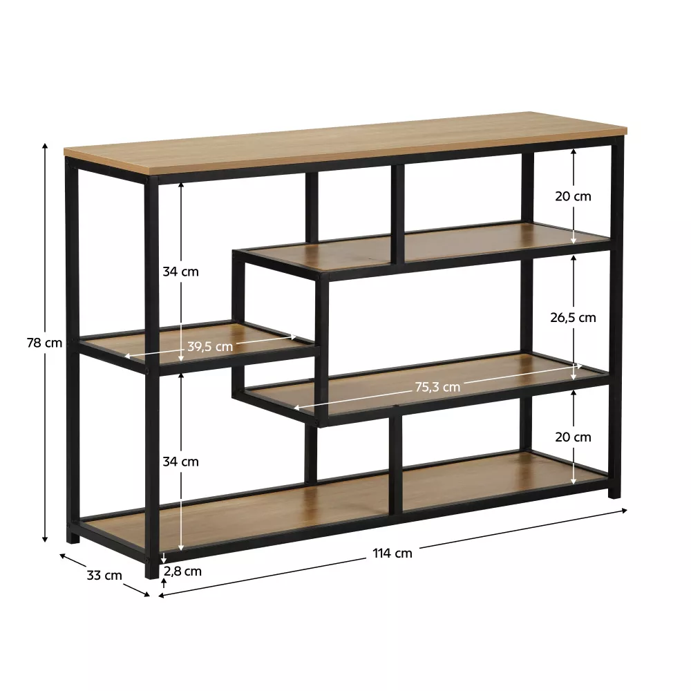 Regál BILOTE TYP 2 je stylovým a zároveň praktickým doplňkem, který najde uplatnění nejen v obývacím pokoji, ale také v předsíni, ložnici či pracovně. Jeho černá kovová konstrukce působí moderním a nadčasovým dojmem, zároveň zajišťuje stabilitu a dlouhou životnost. Pět otevřených polic v různých výškách poskytuje dostatek prostoru pro uspořádání knih, úložných boxů, dekorací či květin.