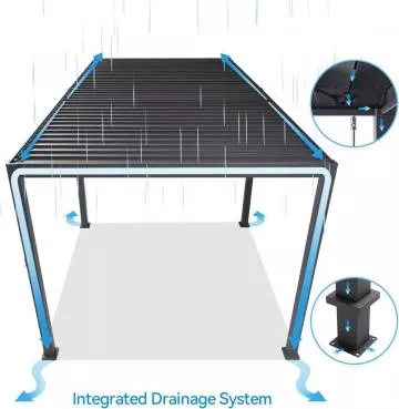 Lamely jsou rozděleny na 2 zóny a každou tuto část je možné ovládat zvlášť. 50 nastavitelných otočných lamel Vás ochrání nejen před sluncem, ale i před deštěm. Lamely lze otáčet od 0°, kdy docílíte úplně uzavřené střechy až do 135°, díky čemuž získáte skvělou mobilitu a možnost zastínit slunce z jakékoliv strany.