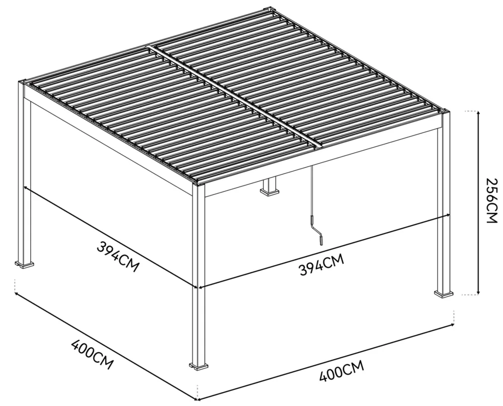 Prémiová zahradní hliníková volně stojící bioklimatická pergola o rozměrech 4x4 metry představuje ideální způsob zastřešení Vašeho venkovního posezení.