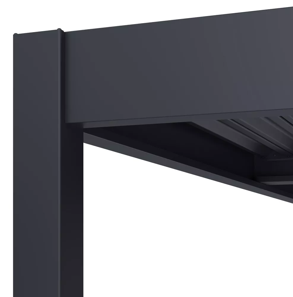Velmi pevná a stabilní konstrukce v antracitové barvě RAL 7016, v matné povrchové úpravě se hodí do každého prostoru, není zapotřebí vrtat do stěny. Pergola je vyrobena z vysoce kvalitního hliníku, který je ošetřen práškovou barvou, což zaručuje odolnost vůči povětrnostním vlivům.
