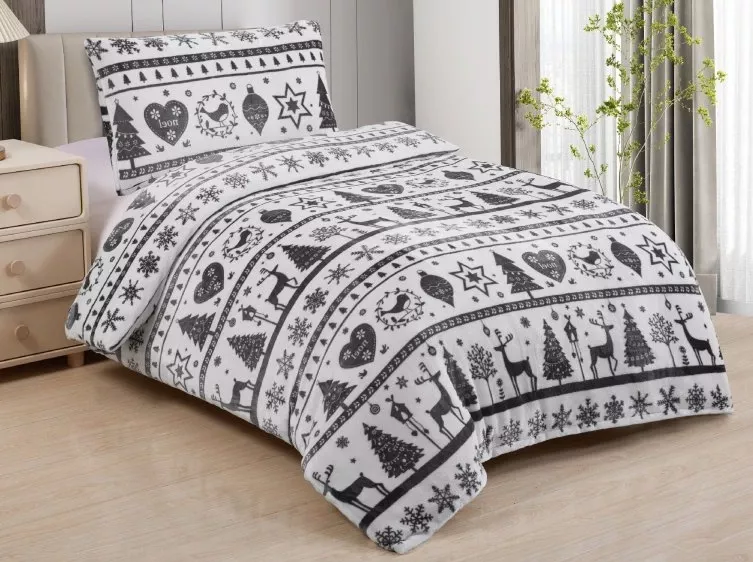 Povlečení Mikrovlákno a Mikroflanel Vánoce šedobílé