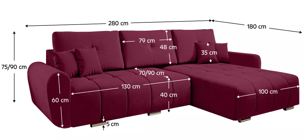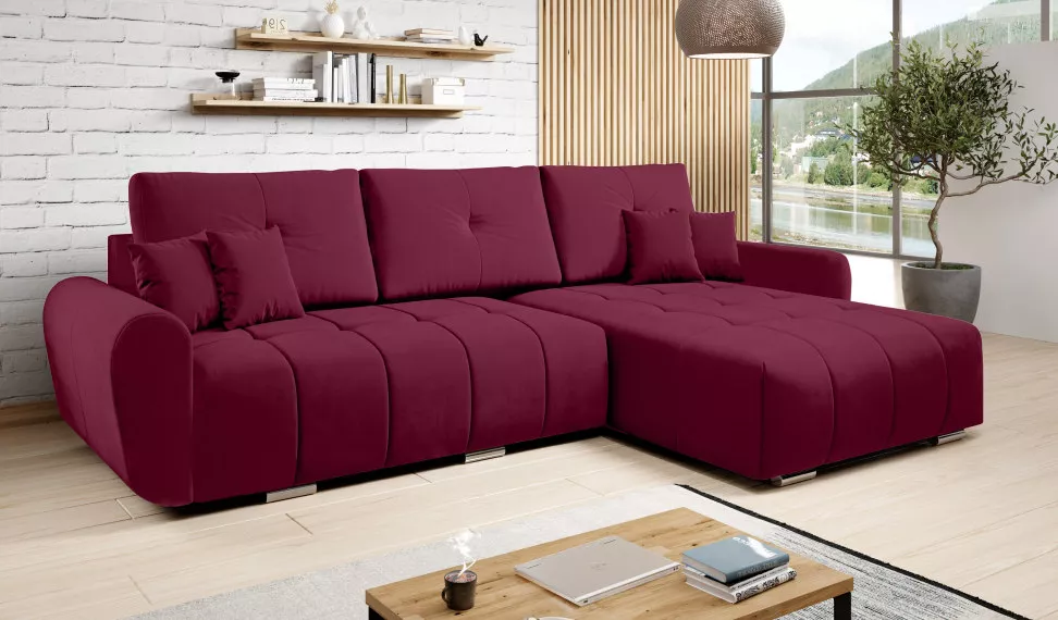 Moderní rohová sedací souprava, která spojuje elegantní design a maximální komfort. Díky celočalouněnému provedení ji lze umístit i do prostoru, kde dokonale vynikne. Vodoodpudivá úprava látky zajišťuje snadnou údržbu, protože tekutiny se nevsakují. Sedačka nabízí funkci rozkladu s plochou na spaní 134×230 cm a praktický úložný prostor pro uschování lůžkovin či dek. Univerzální provedení umožňuje sestavení na levý i pravý roh podle vašich potřeb. Komfort sezení podporuje kombinace vlnitých pružin a PUR pěny, zatímco dekorativní i opěrkové polštáře zvyšují pohodlí a dotvářejí útulný vzhled. Stabilitu zajišťují plastové nožičky ve stříbrném provedení.