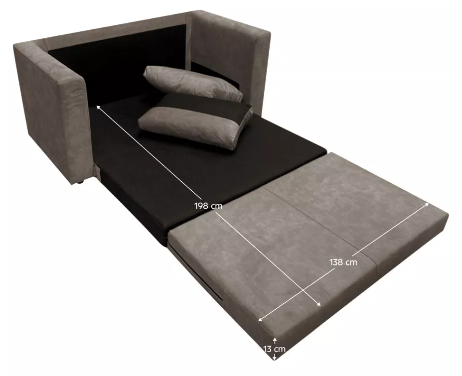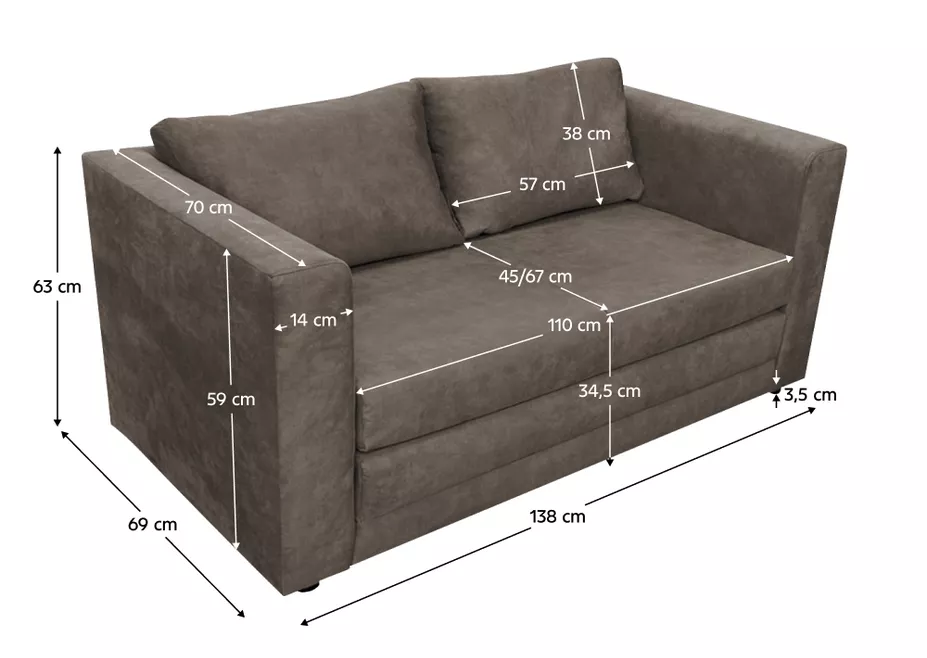Stojí pevně na černých plastových nožičkách a dodává se s polštáři pro pohodlné opření zad. Jednou z velkých výhod je rozkládací funkce, díky které snadno proměníte pohovku na pohodlné lůžko. Komfort sezení i spaní zajišťuje PU pěna s tvrdostí T25.