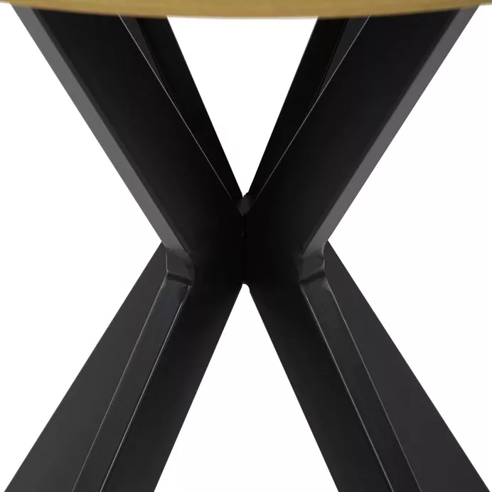 Jídelní stůl značky Autronic spojuje přírodní vzhled s moderním industriálním stylem. Deska z MDF materiálu v dekoru divoký dub je doplněna o ABS hranu, která chrání okraje před poškozením a prodlužuje životnost. Robustní podnož z černého kovu v designu propletených nohou zajišťuje stabilitu, pevnost i originální estetiku.