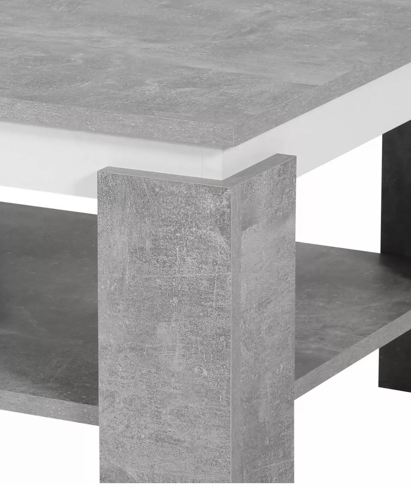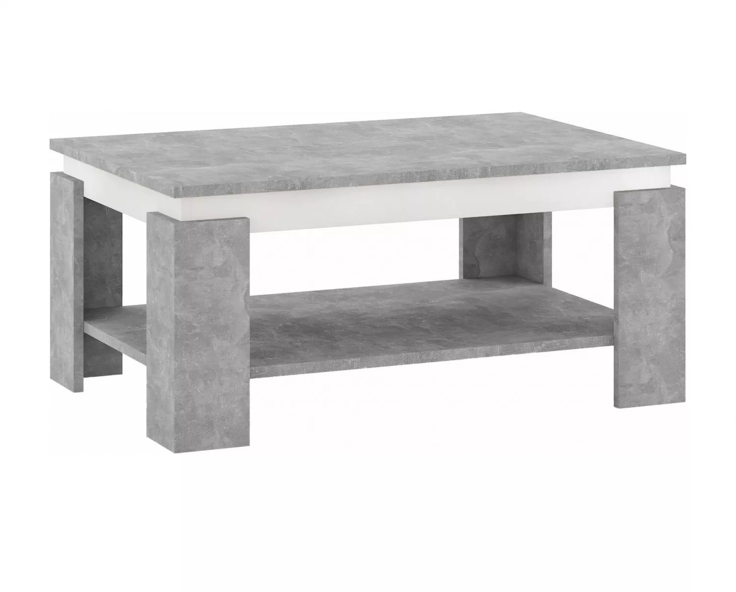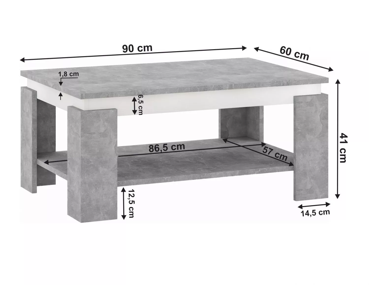 Konferenční stolek PIANI v kombinaci dekoru betonu a bílé barvy je moderním a praktickým doplňkem každého obývacího pokoje. Laminovaná DTD deska s ABS hranami zajišťuje vysokou odolnost proti poškození i snadnou údržbu. Stolek je vybaven prostorným odkládacím prostorem, kam pohodlně uložíte knihy, časopisy nebo jiné drobnosti. Díky svým rozměrům působí kompaktně a hodí se i do menších interiérů, kde dodá čistý a elegantní vzhled.