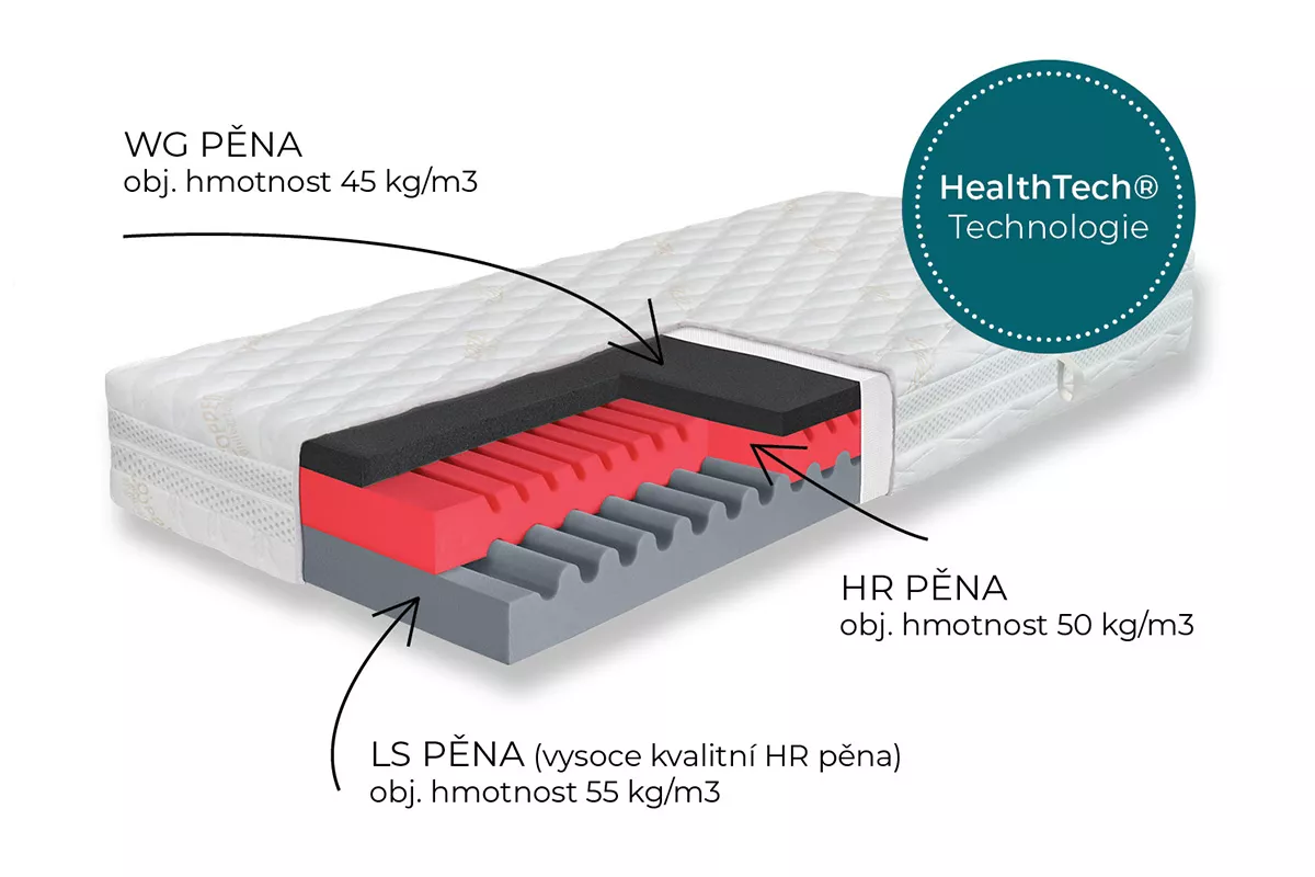Podpora páteře: prémiové pěny LS a HR udržují páteř v přirozeném postavení po celou noc.