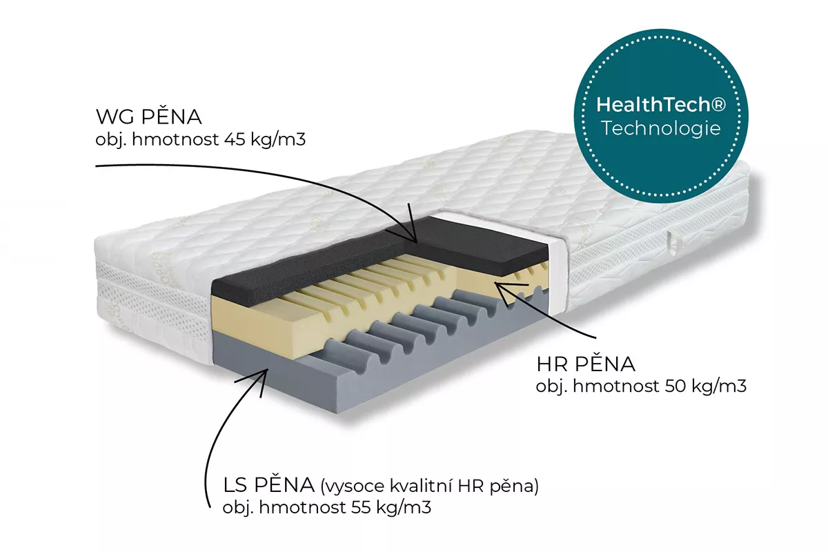 - Prémiová kombinace LS a HR pěny - dlouhá životnost, stabilita a rovnoměrná podpora.
