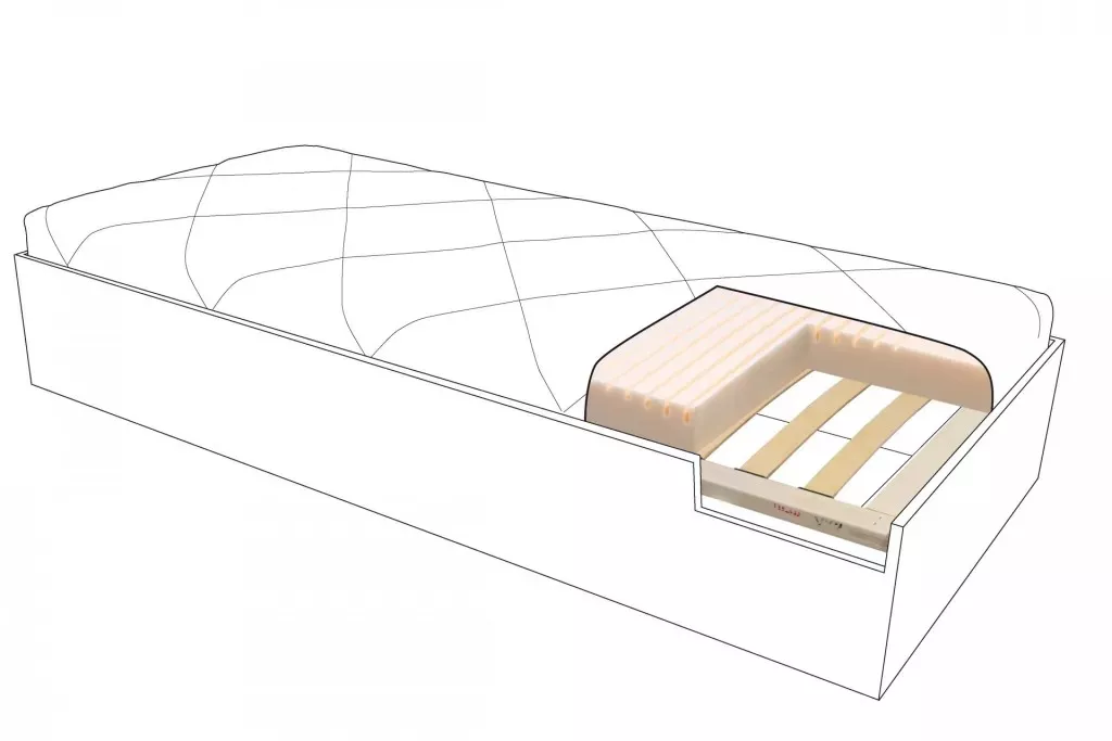 Povrch jádra matrace má speciální strukturu pro lepší proudění vzduchu, čímž napomáhá udržení zdravého spánkového klimatu a zajišťuje příjemné prostředí po celou noc. Komfortní výška lehací plochy 53 cm usnadňuje vstávání a uléhání. Samozřejmostí je i velký úložný prostor na lůžkoviny, který je snadno přístupný od nohou.