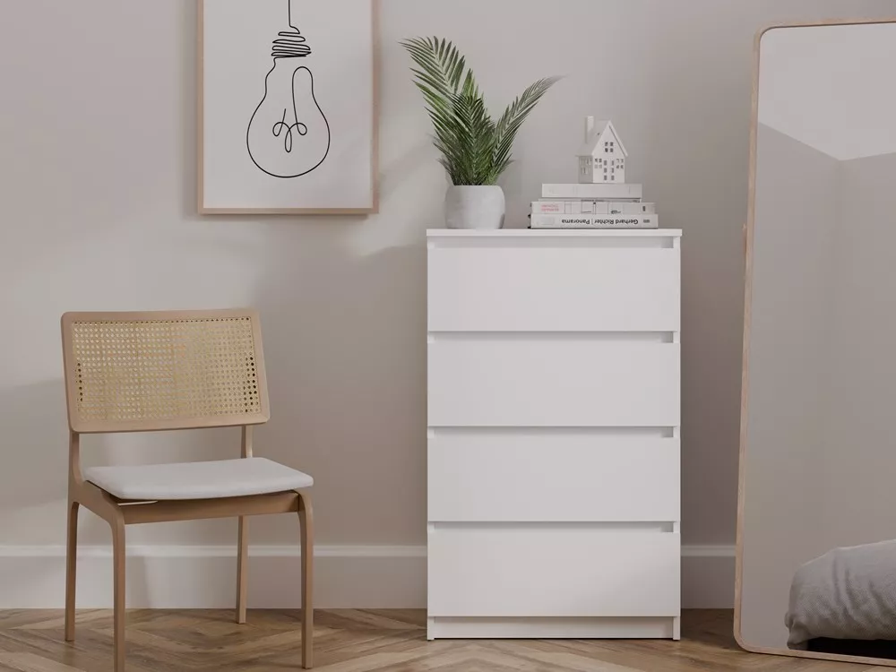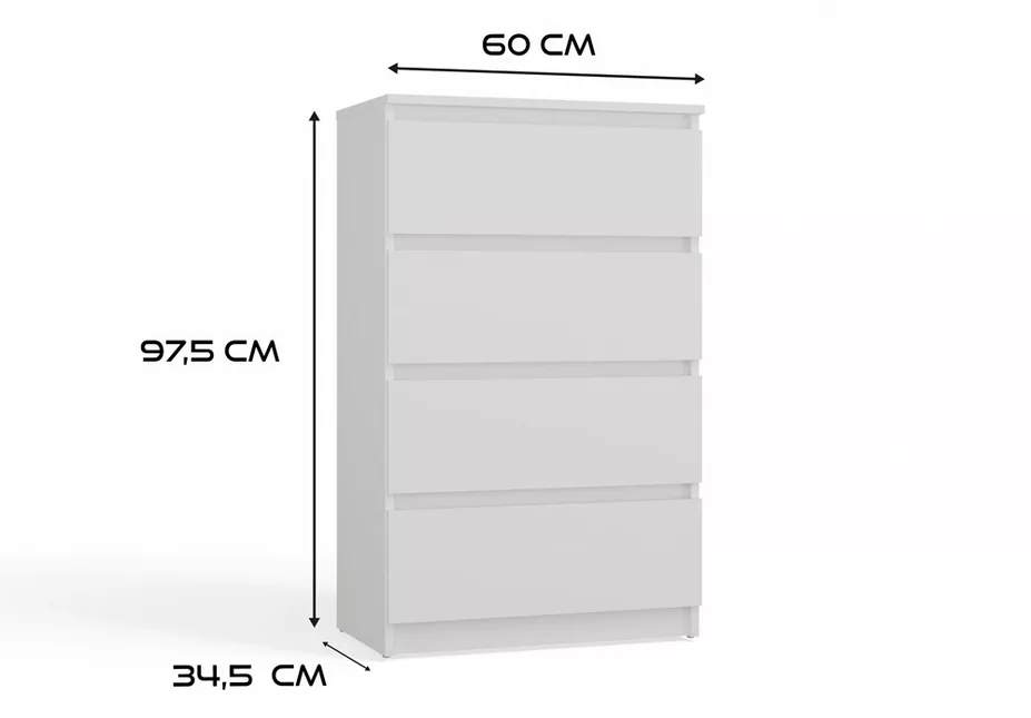Nadčasová komoda Malvína v minimalistickém designu nabízí dostatek úložného prostoru a univerzální využití v jakékoliv místnosti vašeho domova. Díky jednoduchému provedení a bezúchytkovým čelům zásuvek působí elegantně a moderně, přičemž zůstává maximálně praktická. Komoda je vyrobena ze snadno udržovatelného lamina, jehož hrany jsou zakončené kvalitním ABS materiálem, což zaručuje dlouhou životnost a odolnost vůči poškození.