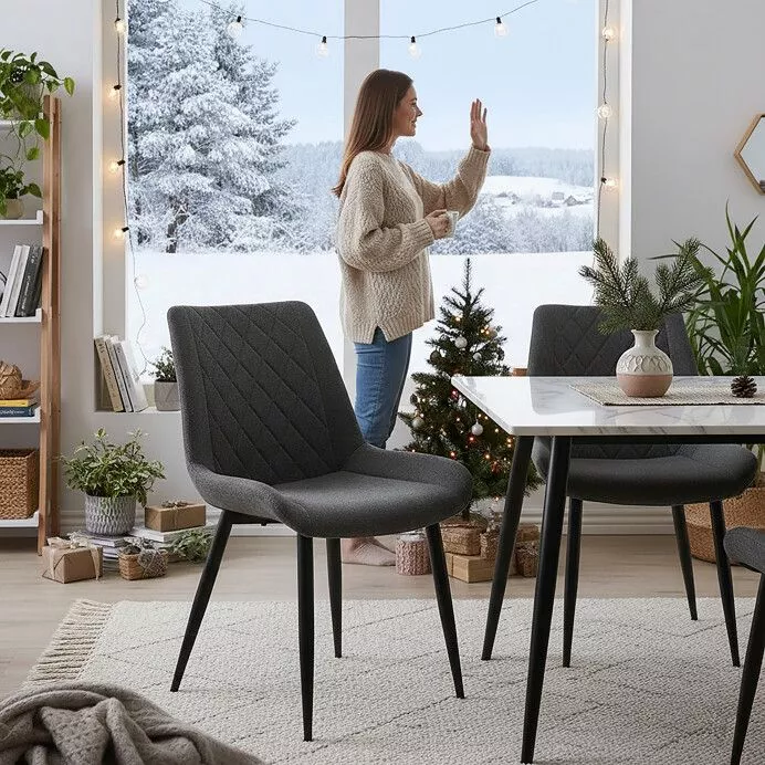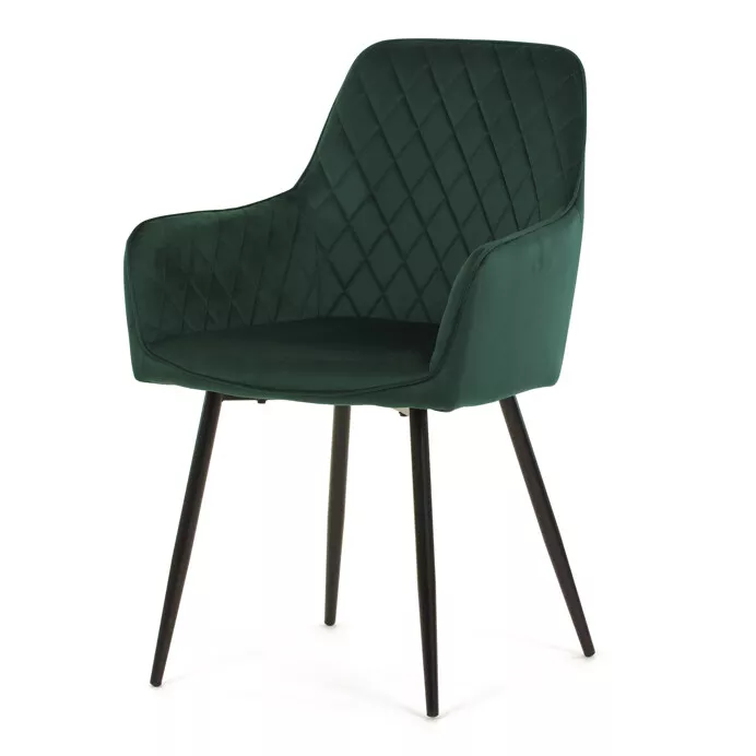Čalounění je ozdobeno jemným kosočtverečkovým prošitím, které podtrhuje moderní styl a dodává židli luxusní vzhled. Sametová látka je příjemná na dotek, odolná vůči opotřebení a snadno se čistí.
