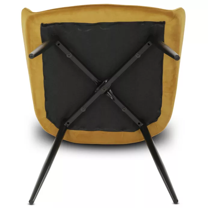 Pevná kovová konstrukce v černém matném provedení zajišťuje stabilitu, dlouhou životnost a perfektní vizuální soulad s potahem. Židle není otočná, což přispívá k její jednoduché, pevné a spolehlivé konstrukci.