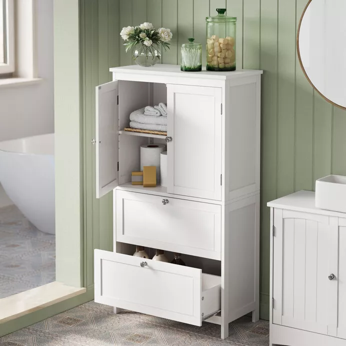 Tato komoda o rozměrech 60 × 30 × 110 cm zaujme svým čistým designem a praktickým členěním úložného prostoru. Je vyrobena z kvalitního MDF materiálu s matnou bílou povrchovou úpravou, která napodobuje přírodní strukturu dřeva a zároveň umožňuje snadnou údržbu.