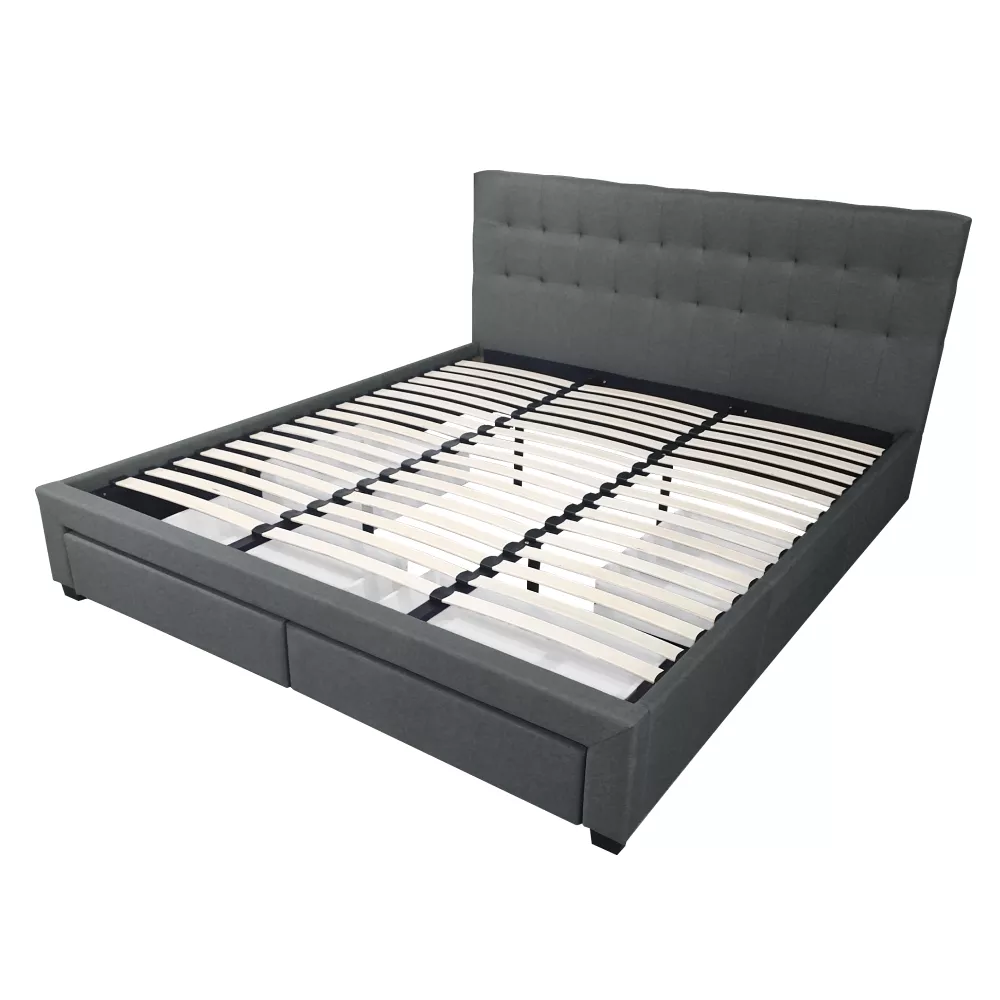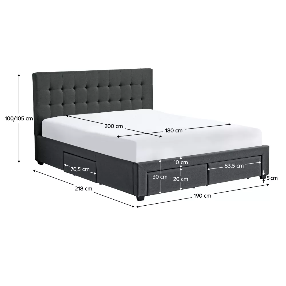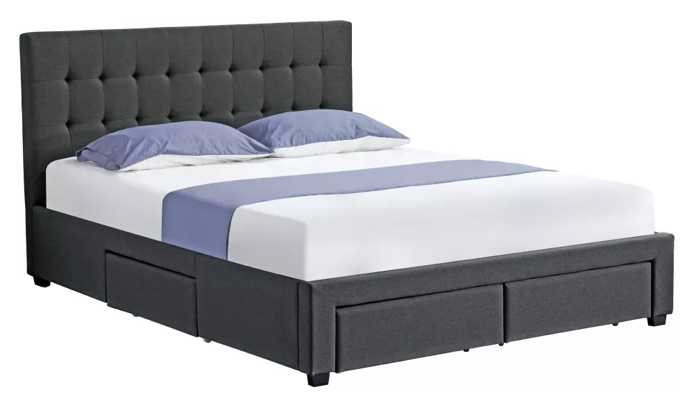 Postel je vybavena lamelovým roštem, který poskytuje ideální podporu matraci a přispívá ke kvalitnímu spánku. Čtyři praktické výsuvné šuplíky ukryté v rámu postele nabízí dostatek místa pro lůžkoviny, polštáře nebo sezónní oblečení - ložnice tak zůstane vždy upravená a přehledná.