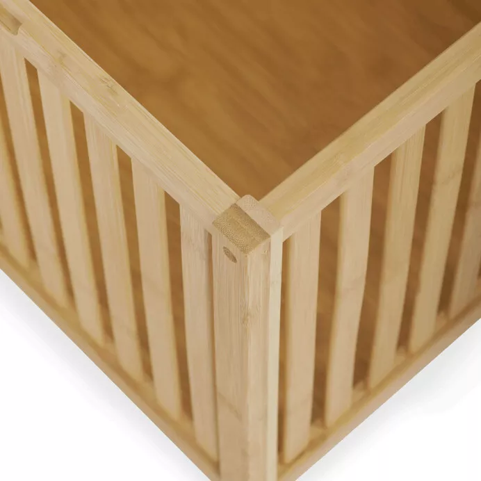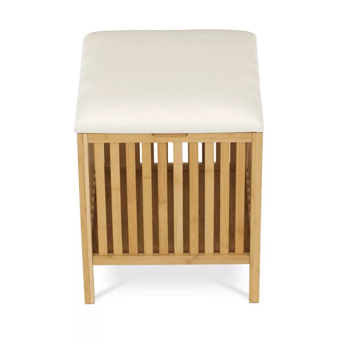 Elegantní koš na prádlo z masivního bambusu v přírodním odstínu spojuje praktický úložný prostor s možností pohodlného sezení. Díky pevné bambusové konstrukci tvořené lamelami je koš odolný, stabilní a zároveň zajišťuje přirozenou cirkulaci vzduchu uvnitř.