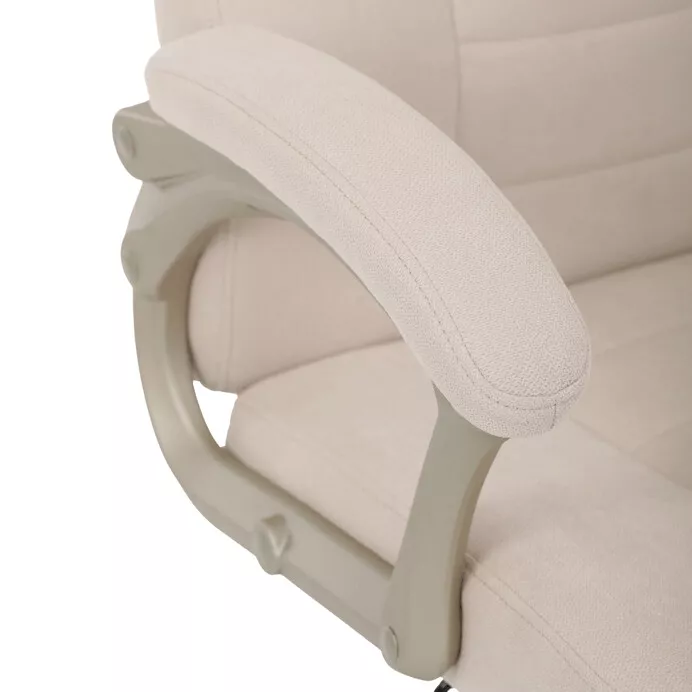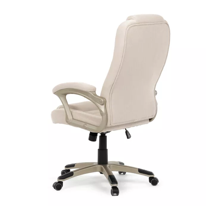 Elegantní kancelářské křeslo v béžové barvě spojuje komfort, funkčnost a moderní design, díky čemuž je ideální volbou pro domácí pracovnu i kancelář. Čalounění z kvalitní látky je příjemné na dotek, snadno se udržuje a vytváří příjemný vizuální dojem.