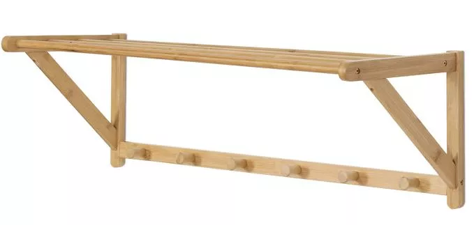 Nástěnná police s věšáky DR-B004 z masivního bambusu v přírodním odstínu spojuje funkčnost s estetickým vzhledem. Horní část poskytuje ...